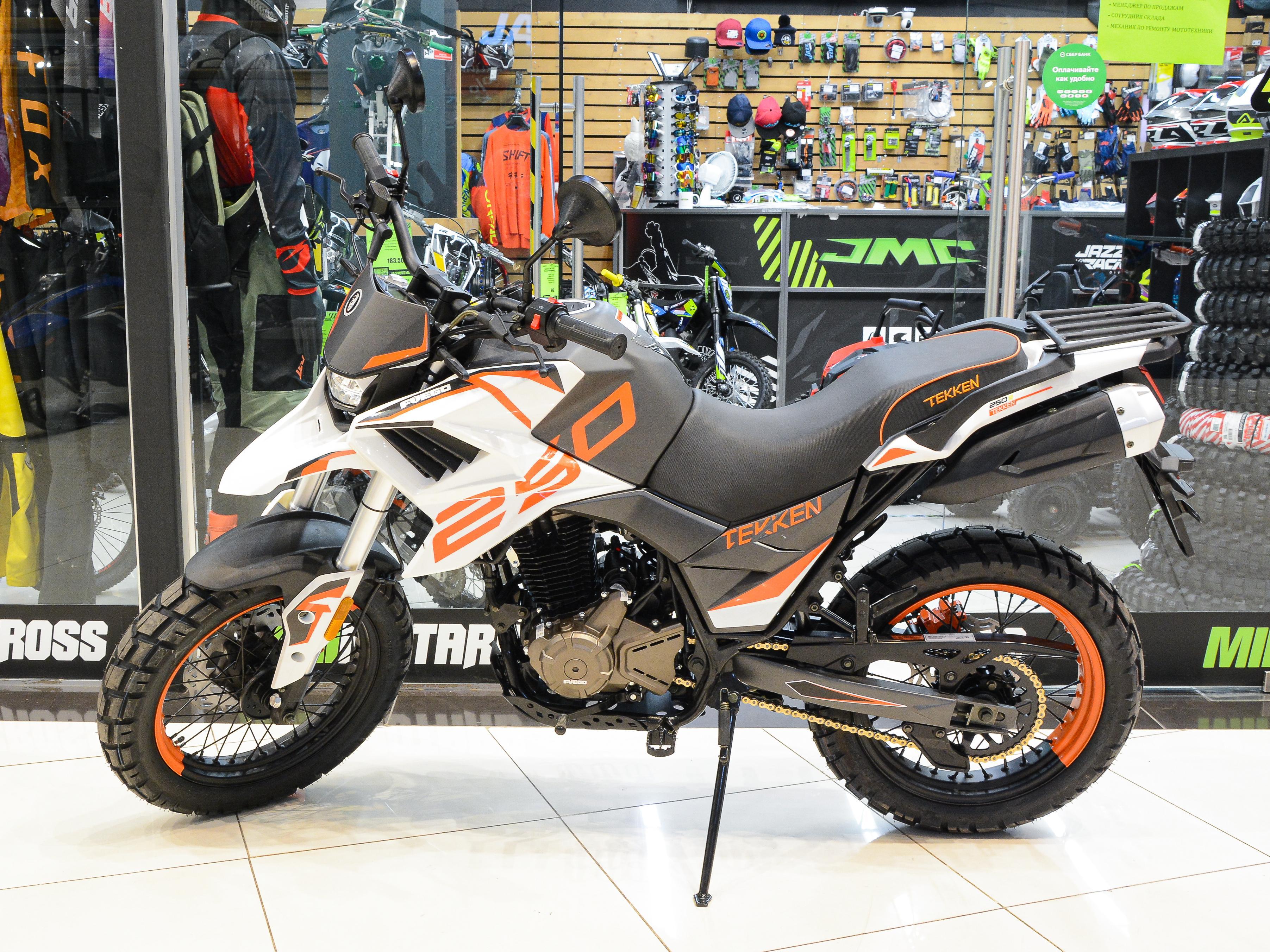 Универсальный байк чувствует себя уверенно в покатушках выходного дня и в дальних путешествиях — его не пугают ни отсутствие асфальта, ни плохие погодные условия. FUEGO Tekken 250 экономичен , расход топлива не превышает 4 литра на 100 км даже в сложных режимах. Байк не доставляет проблем в обслуживании и незапланированных ремонтах. Двигатель это обновленная версия 171 FMF, который знаком и хорошо изучен российскими райдерами. Все запчасти и комплектующие поставляются в Россию от производителя.